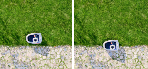 – Befahrbare Begrenzung: Der Navimow fährt direkt auf der Begrenzungslinie und sorgt für ein besonders sauberes Schnittbild. Wichtig: Die Rasenkante muss eben sein, damit der Roboter problemlos darüber fahren kann.
